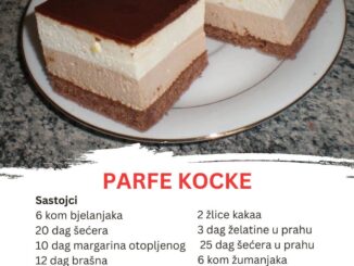 Evo detalnog recepta za Parfe kocke – jednostavan i ukusan desert sa slojevima, kremom i čokoladom koji će oduševiti svakog sladokusca. Parfe kocke – Recept Sastojci: Za koru: 200 g mlevenih petit kvasca (ili bilo […]