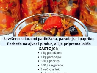 Savršena salata od patlidžana, paradajza i paprike. Podseća na ajvar i pinđur, ali je priprema lakša. Sastojci: 1 kg patlidžana 1 kg paradajza 500 g paprika 400 g šargarepe 1 veći crni luk 1 […]