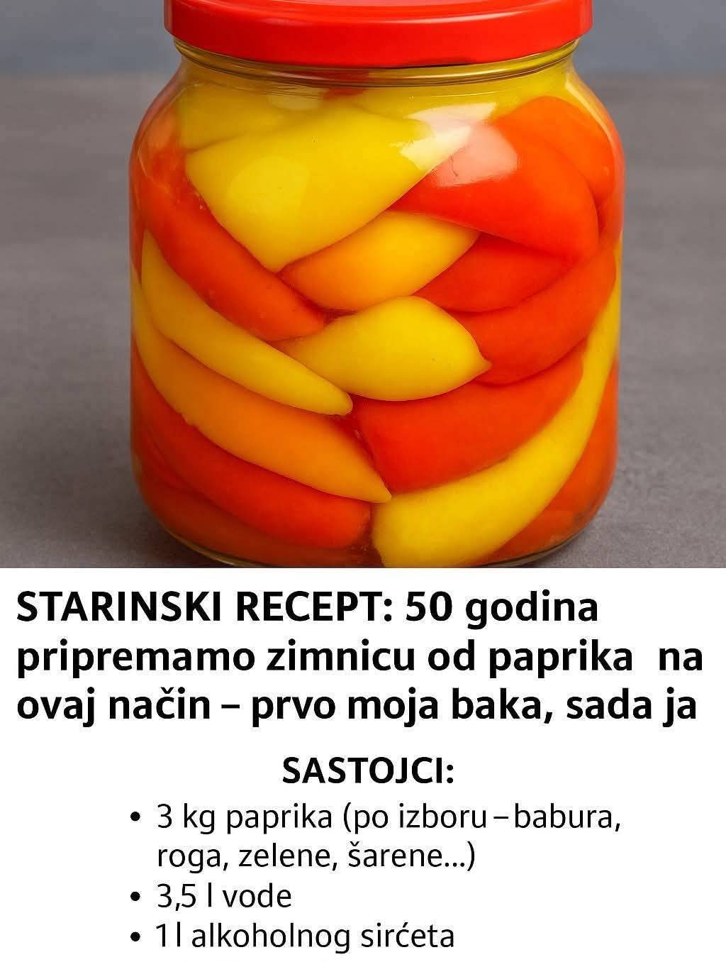 STARINSKI RECEPT: 50 godina pripremamo zimnicu od paprika na ovaj način – prvo moja baka, sada ja. Pripremite papriku za zimu po ovom receptu, oduševiće vas. Barene paprike iz tegle sa medom. Recept za zimnicu […]