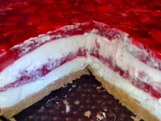 Keks deo – donji sloj: 300 gr mlevenog keksa 100 gr margarina ili maslaca 100 ml mleka Beli deo – srednji deo: 400 gr krem sira – bilo koji neslani 100 gr šećera […]