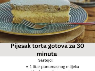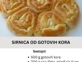 Sastojci: lisnato testo (1 pakovanje zamrznutog – 500 gr. ili dva pakovanja svežeg) 10 jaja 1,5 l mleka 150 gr. gustina 350 – 400 gr. šećera 30 gr. vanilin šećera ili 2 kašike arome od […]
