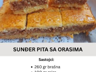 Ako volite domaće poslastice koje bude uspomene i miris na bakinu kuhinju, ova starinska torta sa orasima je pravi izbor. Sočne kore, bogat kremasti fil i mirisna narandžina kora čine je neodoljivom i savršenom za […]