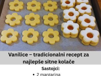 Vanilice su pravi klasik među domaćim kolačima. Mekane, mirisne i uvaljane u prah šećer, pune se džemom po želji – najčešće od kajsije ili malina. Ovaj recept je jednostavan, a rezultat su kolačići koji se […]