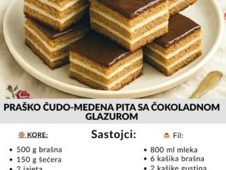 Vanilice su pravi klasik među domaćim kolačima. Mekane, mirisne i uvaljane u prah šećer, pune se džemom po želji – najčešće od kajsije ili malina. Ovaj recept je jednostavan, a rezultat su kolačići koji se […]