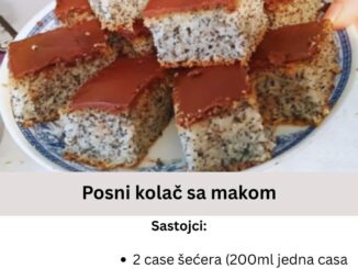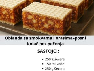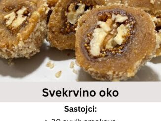 Kada ga napravite i probate sve će vam biti jasno. SVEKRVINO OKO: Ko nije probao neka proba, ukus je fantastican. Sastojci: 500g suvi smokava 150g oraha mljeveni 100g putera 200g šećera 1 šolja vode […]