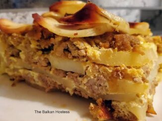 Sastojci: 700 g krompira 500 g mljevenog mesa 1 veći luk 2–3 kašike ulja so, biber malo aleve paprike 3 jaja 200 ml mlijeka ili pavlake […]