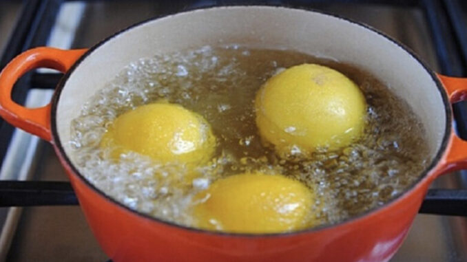 Prerežite 6 limuna na pola i dodajte ih u posudu sa vodom pa kuhajte vodu 3 minuta. Ostavite posudu na nekih 15 minuta da se ohladi pa uklonite limun i pulpe iz vode.