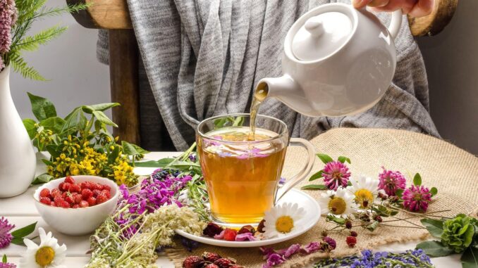 A woman pours herbal tea with chamomile, rosehip, clover. Tea ceremony. Blooming Sally.,Image: 539402956, License: Royalty-free, Restrictions: , Model Release: no, Credit line: Victoria Sennikova / Alamy / Alamy / Profimedia