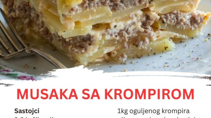 Naravno! Evo detaljnog recepta za klasičnu musaku sa krompirom – domaće jelo koje svi vole, sa hrskavim krompirom i sočnim nadevom od mlevenog mesa.