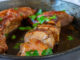 - Batake posolite, pobiberite i premažite maslinovim uljem. U činiji pomešajte beli luk, suvo bilje, crvenu papriku i sok od pola limuna. Utrljajte začinsku mešavinu u meso. Poređajte batake u pleh i ubacite kolutove limuna između njih. Pecite na 200°C oko 45-60 minuta, dok lepo ne porumene i ne postanu hrskavi spolja. Po želji pospite seckanim peršunom i dodajte još malo svežeg limunovog soka.