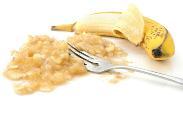 Prvo oljuštite banane i izgnječite ih viljuškom ili kašikom. Bilo bi dobro da to uradite drvenim escajgom, jer će zbog metalnog potamneti.
