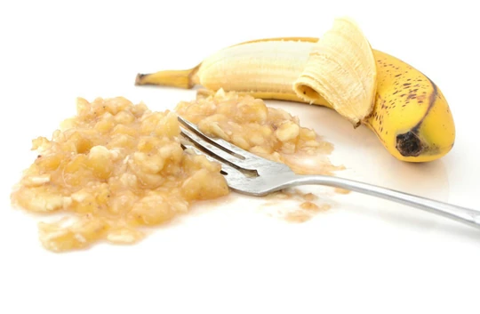 Prvo oljuštite banane i izgnječite ih viljuškom ili kašikom. Bilo bi dobro da to uradite drvenim escajgom, jer će zbog metalnog potamneti. Potom banane stavite u lonac i dodajte im ključalu vodu. Ostavite da se natapa nekih pola sata. Kada se smesa ohladila, dodajte med. Važno je da njega dodate poslednjeg, jer će, ukoliko ga pomešate sa ključalom vodom, izgubiti svoja lekovita svojstva.