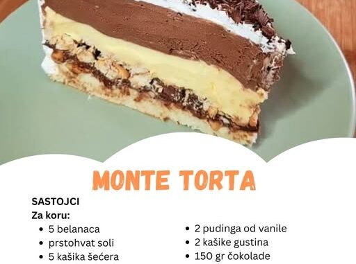 Ako ste ljubitelj bogatih, ali ne preteških torti i volite kada se svaki sloj jasno razlikuje i doprinosi ukusu, onda je Monte torta pravi izbor za vas.