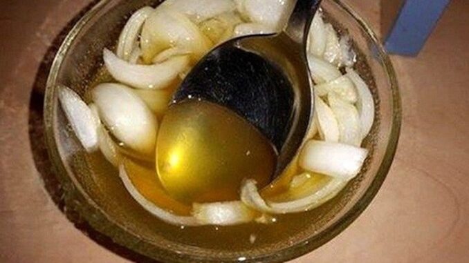 Potom pustimo da se ohladi, dodamo sok od 2 iscijeđena limuna i med te sve dobro miješamo da se potpuno ujednači. Ostavimo da odstoji, a zatim smjesu procijedimo (od komadića luka) i pohranimo u staklenu bocu.
