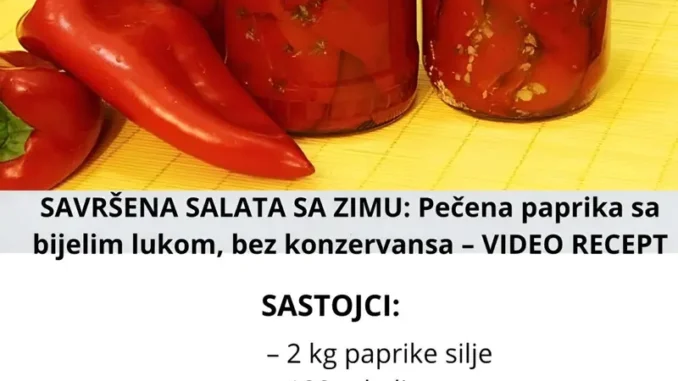 Zimnica recept od pecene paprike silje sa belim lukom iz tegle bez konzervansa. Savrsena salata za zimu, brza i jednostavna priprema.
