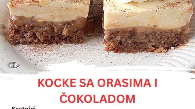 Evo detaljnog recepta za kocke sa orasima i čokoladom – sočan kolač sa bogatim ukusom oraha, prelivom od čokolade i savršen za sve prilike!