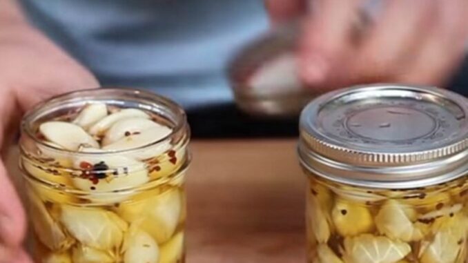 Ako primjetite da su čenovi počeli da mijenjaju boju, ne brinite sve dok su tegle uredno sterilisane i zatvorene, to je hemijski proces između bijelog luka i sirćeta, i za nekoliko dana će čenovi ponovo poprimiti normalnu boju.