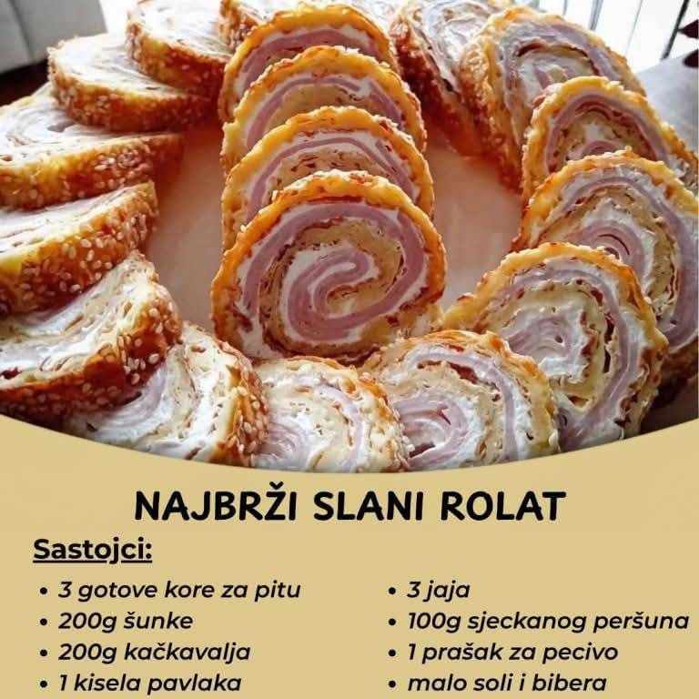 Nakon odmora, razvaljajte rolat u veliki pravougaonik. Isecite ga na pet traka, a zatim svaku traku zasecite cik-cak, tako da dobijete trouglaste komade. Na svaki trougao stavite fil – kockice salame i još malo sira. Urolajte trouglove u male kiflice. Za kraj, svaku kiflicu premažite umućenim belancetom kako bi dobile sjajnu i hrskavu površinu tokom pečenja.