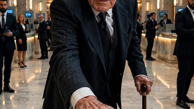 Starac je stajao naslonjen na štap, u starom odelu, sa pogledom koji nije tražio milost — već poštovanje.